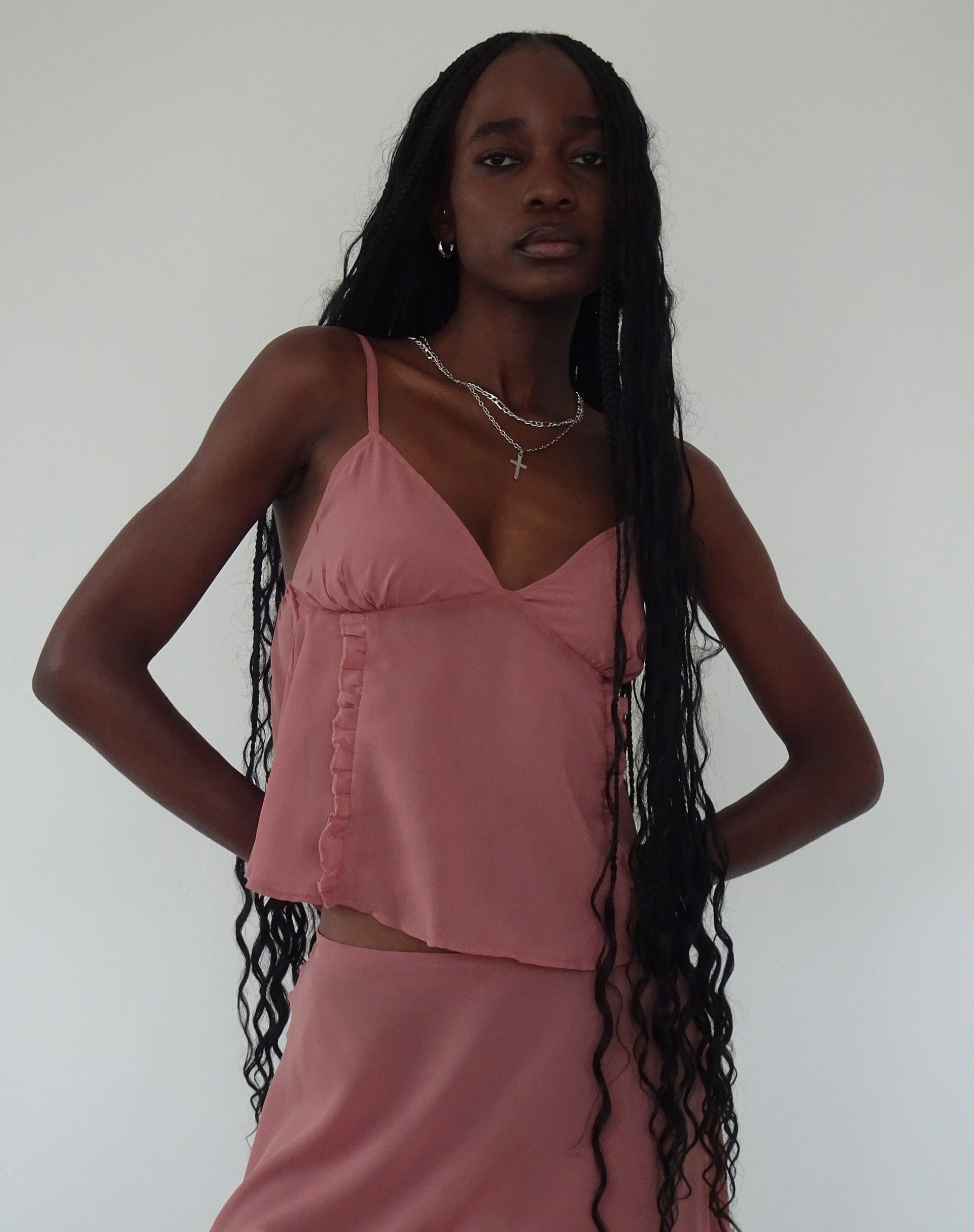 The Alberta is the perfect midi skirt. In a dessert sand hue, it features an asymmetrical hem with high waist. Paired with the matching Melly top, for the perfect co-ord.