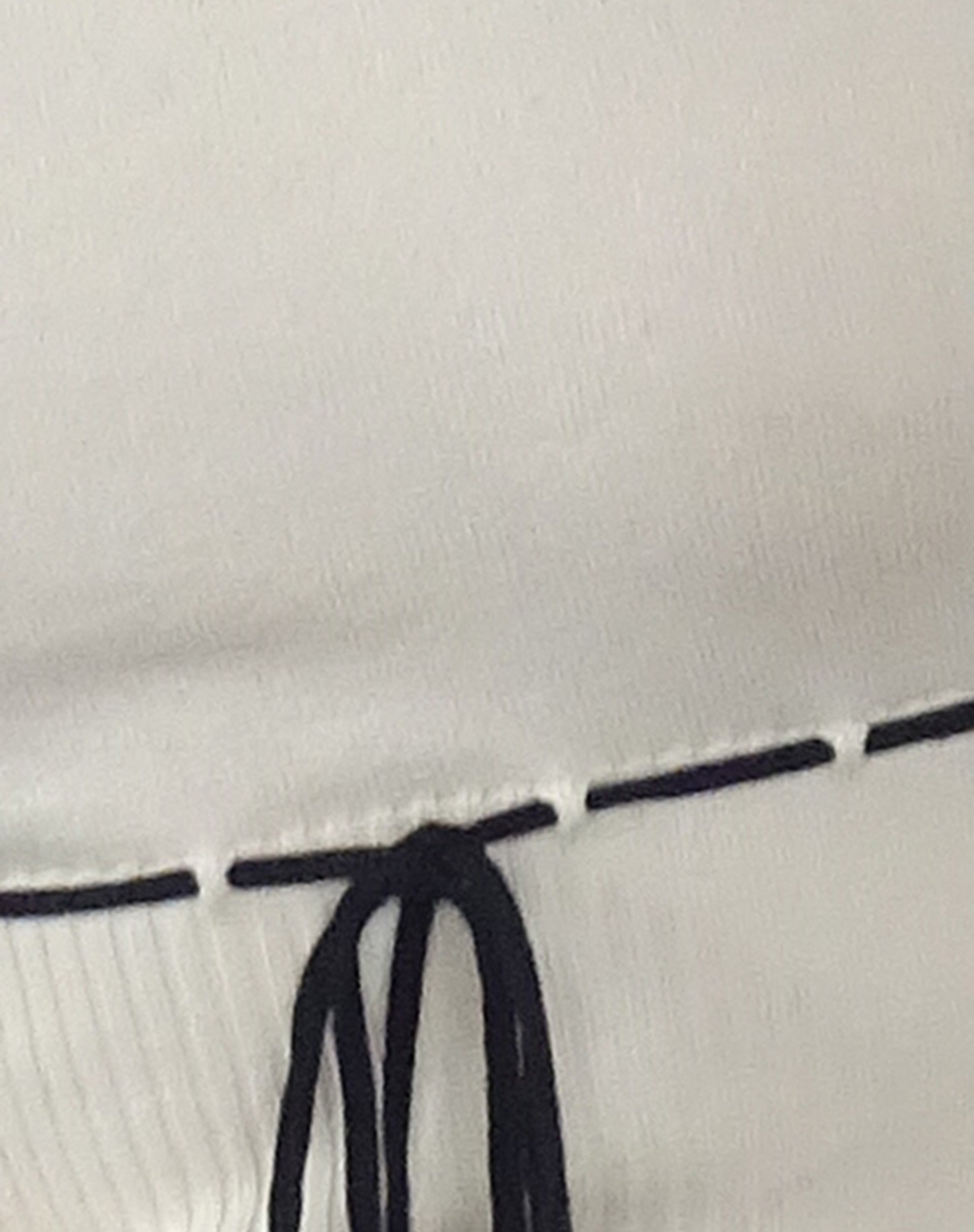 The Awdella top is simple but stylish. In a beige knitted material, it features flared long sleeves, a cropped fit and under-bust black piping detail with a bow motif. We love to wear with our Casini skirt.