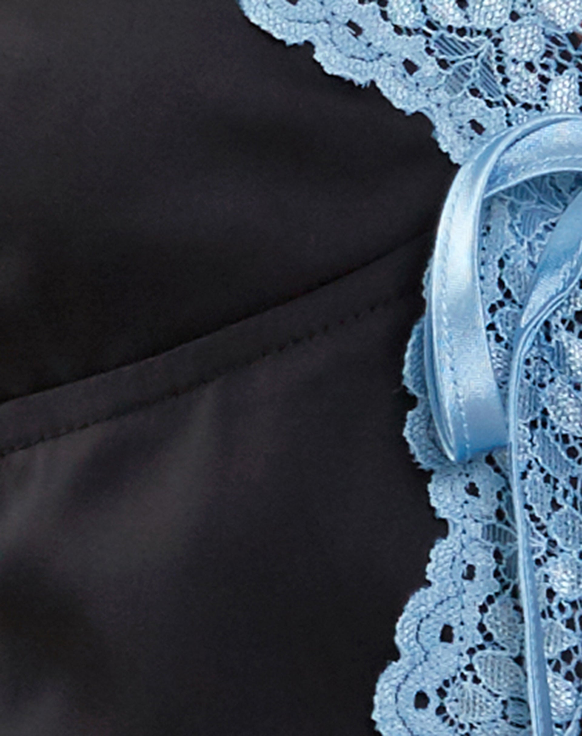 Bahela Tie Front Cami Top in Black with Blue Lace
