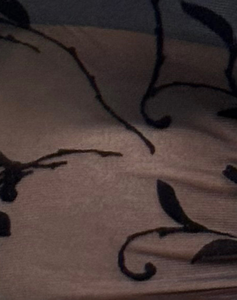 Step out in our Bilancia top. It comes in a strapless, bandeau fit, detailed with a sheer black rose flock print and slightly loose hem.