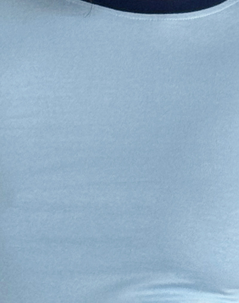 In a blue jersey fabric, the Bonija top features a bodycon fit with a regular hem, long sleeves and a crew neckline. Finished with navy piping down the arms and a small embroidered M. Pair with our classic Casini skirt.