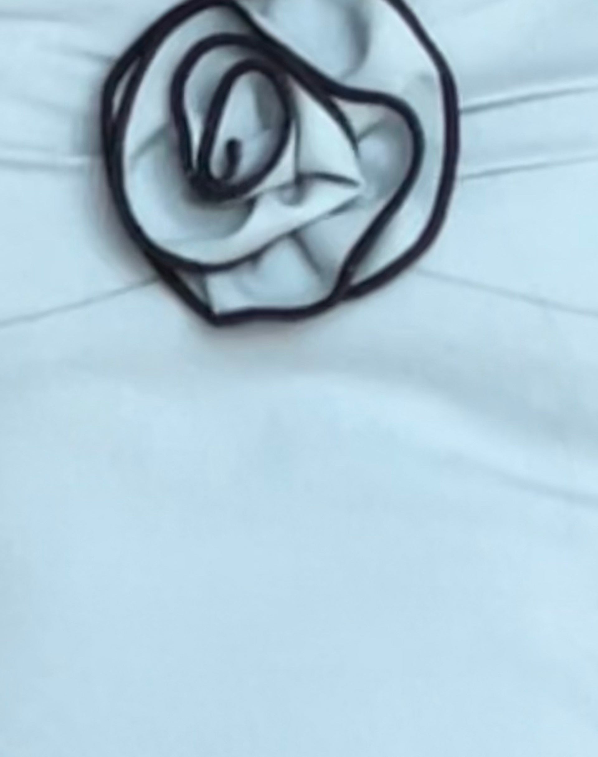 Our Carini cami top, in blue, features ruffle straps with contrasting edge and a 3D rosette bust detailing. We've styled with our Lamsu mini skirt.