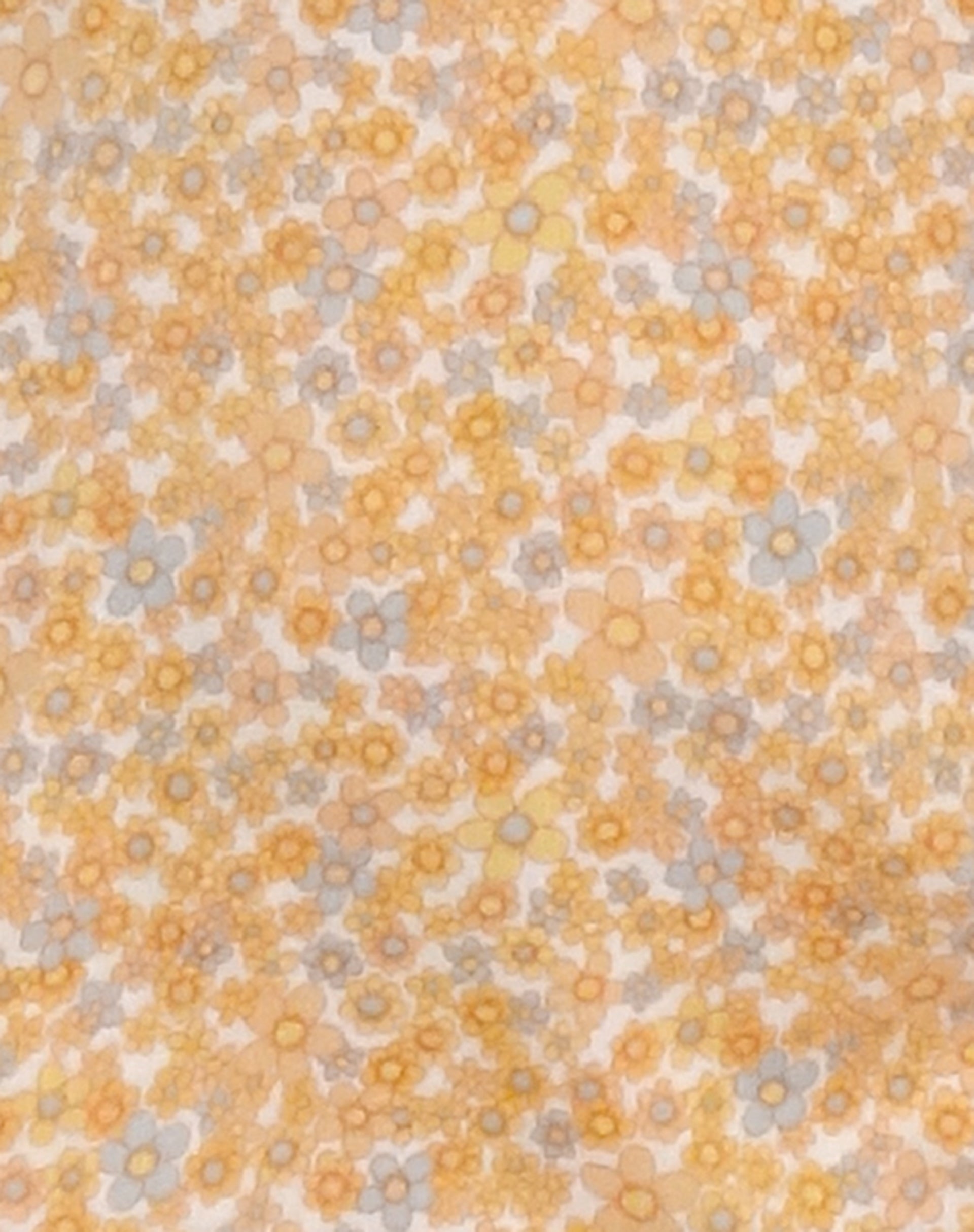 Get ready for summer with our latest midi dress, featuring a yellow ditsy floral print with an open square neck, puff cap sleeves. With an adjustable bow tie at centre front and 2 shirred panels at waist and full skirt.