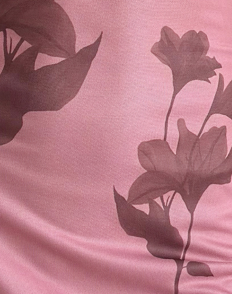 In a tonal flower mauve print on a mesh fabric base, the Clooney dress displays a halterneck tie up design with a mini length and asymmetrical hemline. Finished with fringing detailing on the neckline and hemline.