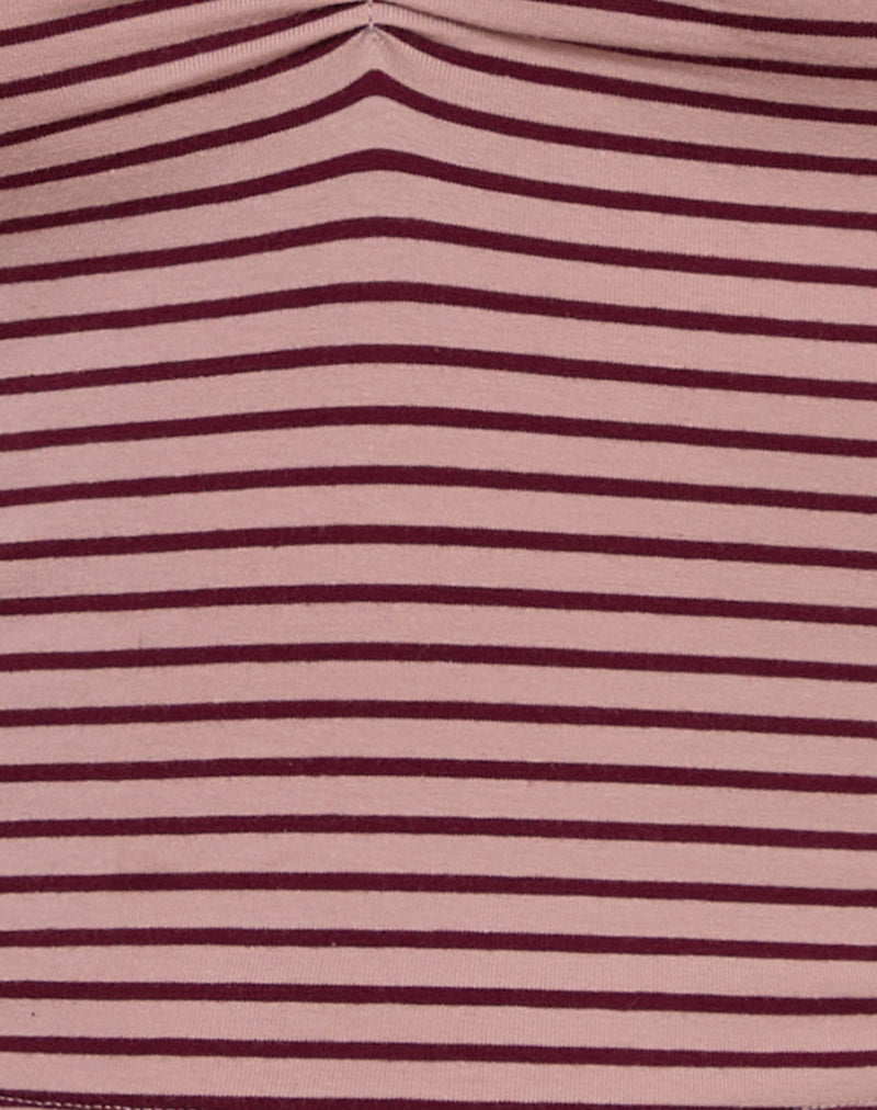 The Danisha top in tonal pink stripe jersey features a flattering V-neckline at the front and back, cap sleeves, and a fitted silhouette. Crafted from a soft, stretchy jersey for comfort and style. Perfect with a denim mini skirt.