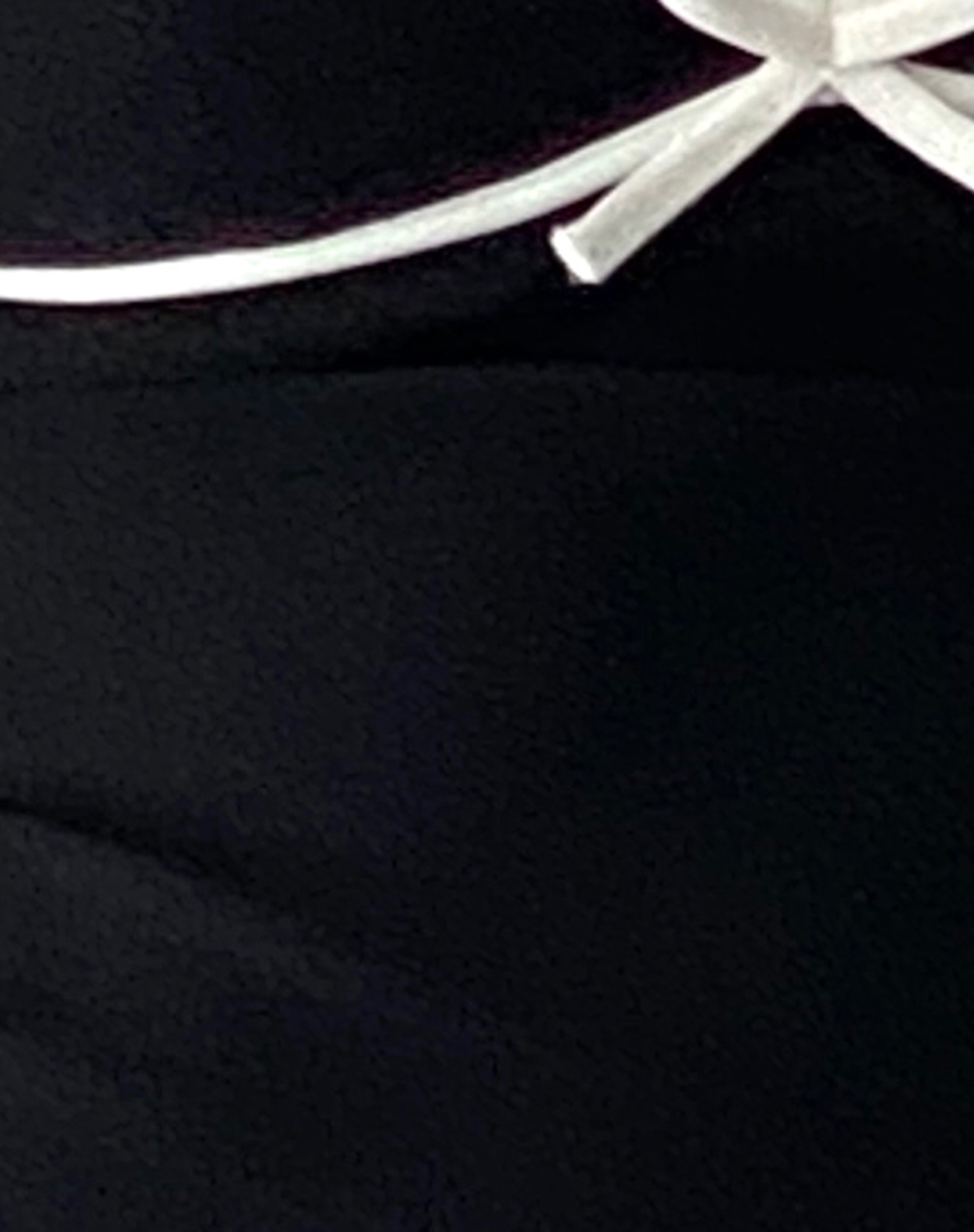 Introducing the Dina cami top. In black, it features thin straps and a v neckline, white binding on the straps and neckline, finished with a decorative bow at the front. Get the coordinated look with our Istari Skirt.