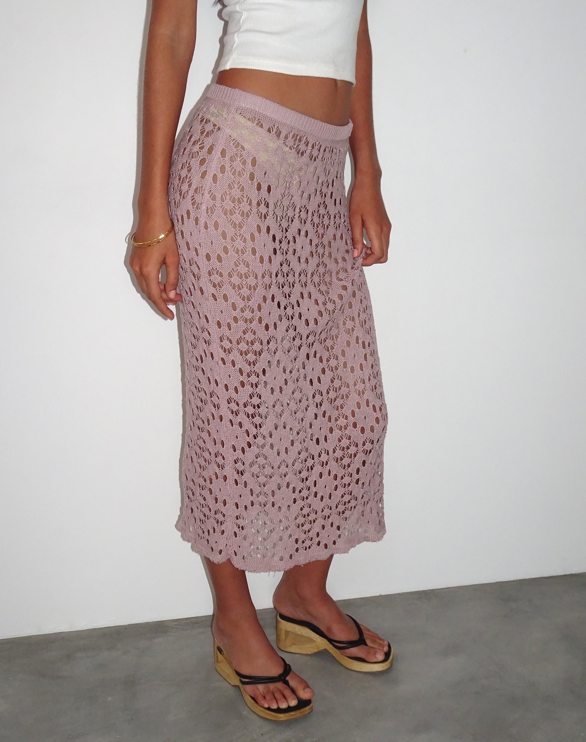 Eldonia Crochet Midi Skirt in Dusty Pink