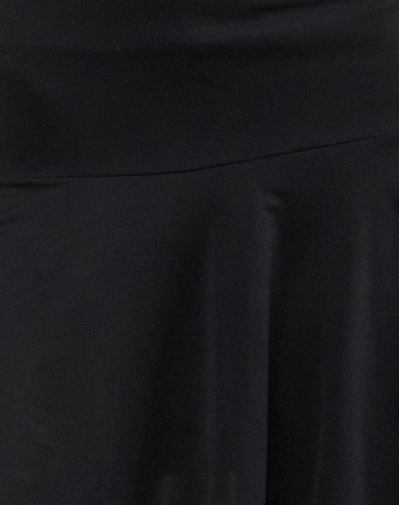 The Ellison dress in a slinky black features a halterneck fit in a mini length with a drop-waist pleated design in a jersey fabric.