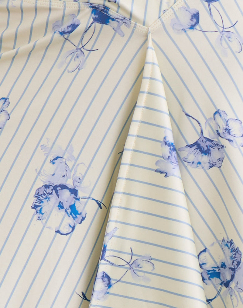 The Esmeray midi skirt is crafted from a lightweight, jersey fabric with a diagonal texture. Features a low waisted design and an asymmetric draped panel. Style with the Tomoe top.