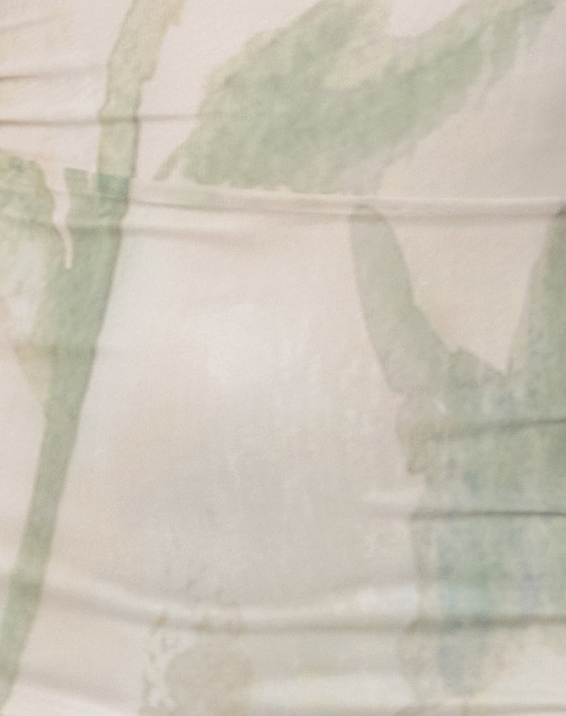 The Flo dress in mesh with an abstract flower painted print. Features a crew neck, sleeveless design and a midi length fit.