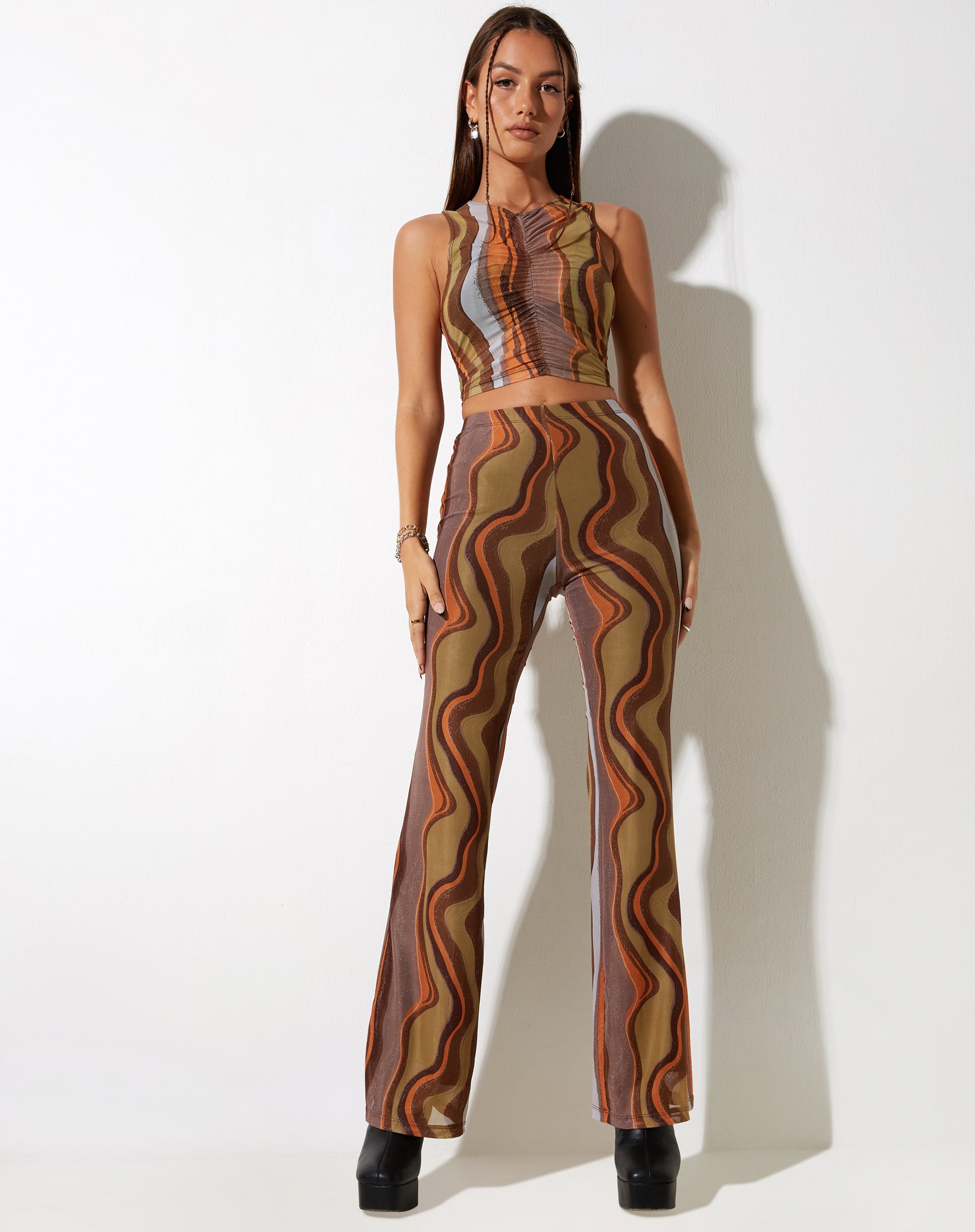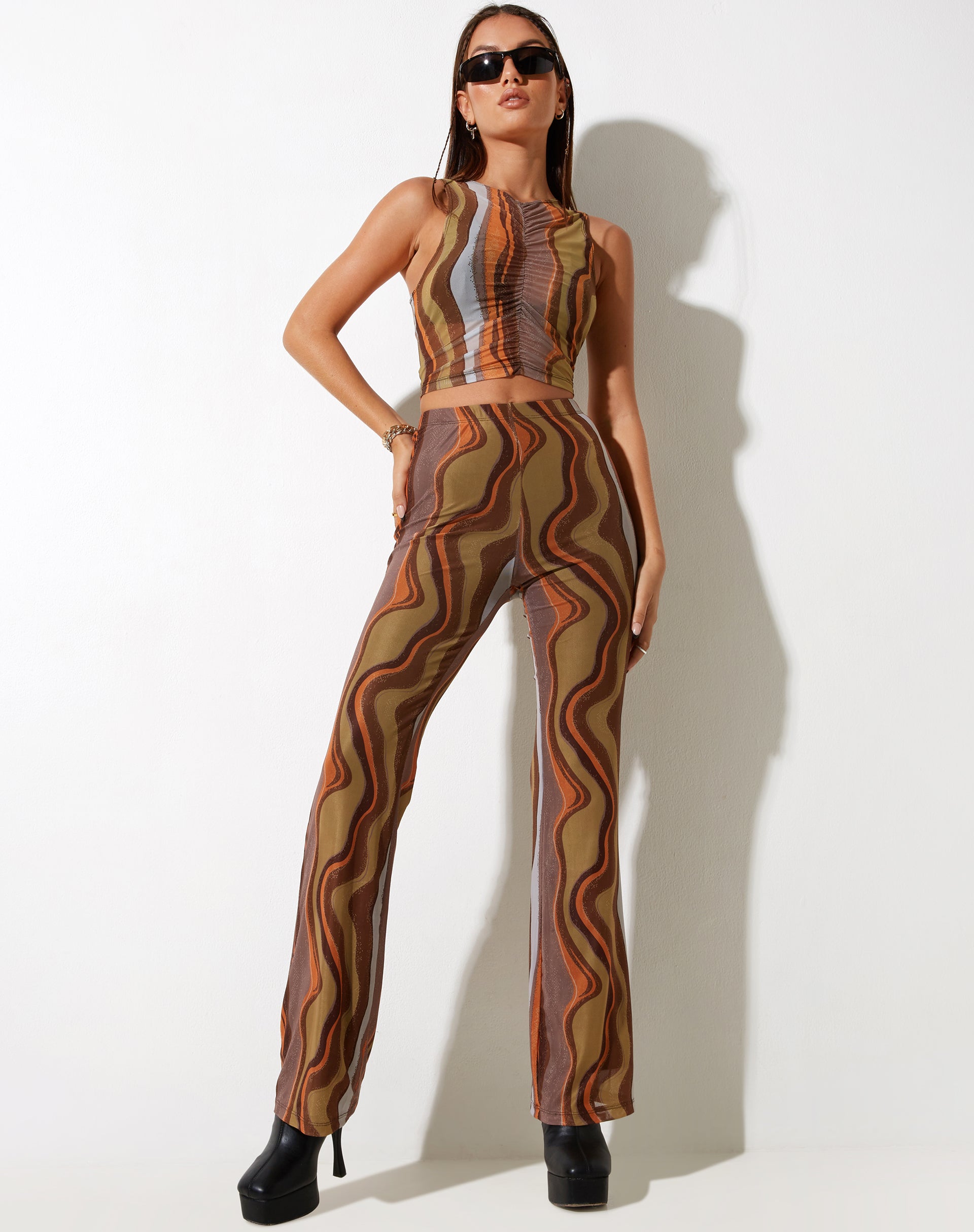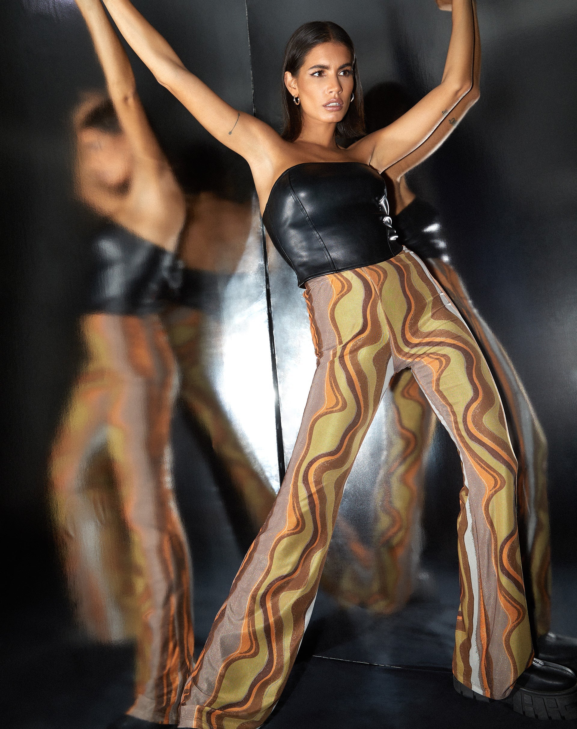 Make a statement with the Herly trousers. In an earthy gradient print, they feature a high waisted fit with flared leg. Complete the look with our matching Birka top.