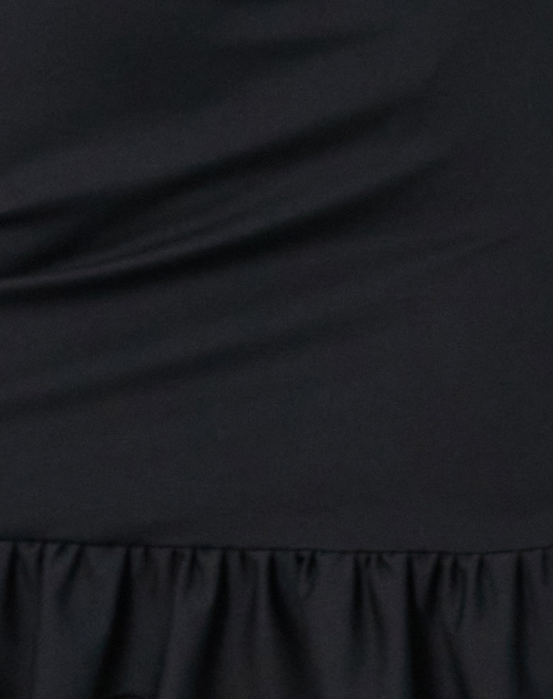 Jessa Ruffle Hem Buckle Strap Mini Dress in Black