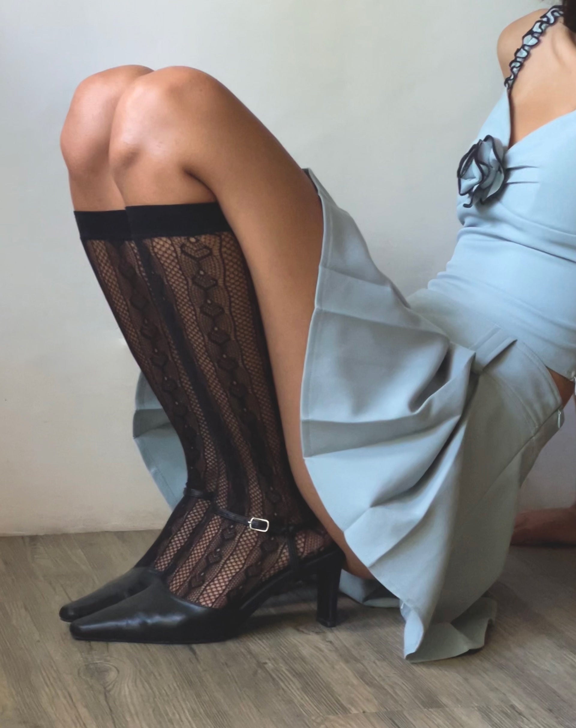 Lamsu Pleated Mini Skirt in Tailoring Blue