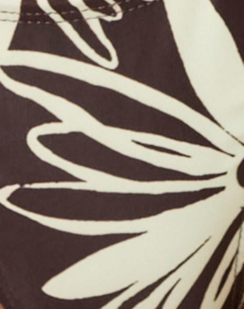 Low rise brazilian cut bikini bottoms with adjustable ties at each side in a brown and ivory floral doodle print, printed on a stretch swim spandex made from recycled materials finished with ivory beads at the end of each tie. Pair with the matching Pami top.