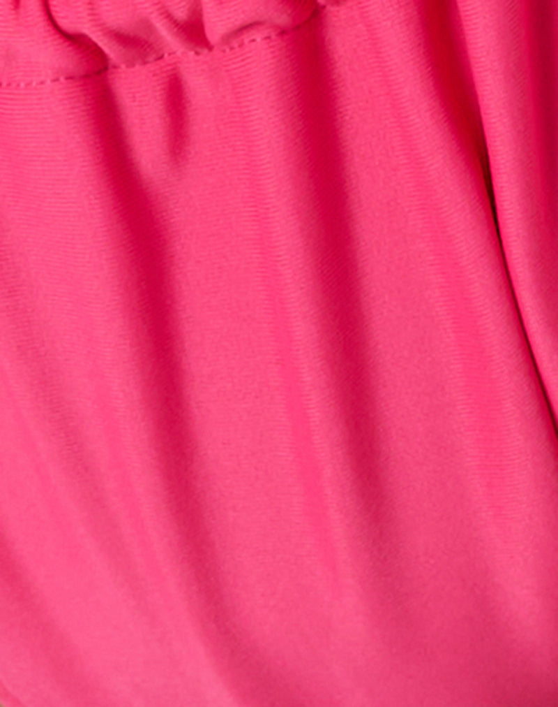 Low rise bikini bottoms with adjustable ties at each side and ruching on the front and back for adjustable coverage in a hot pink colourway, cut from a stretch swim spandex made from recycled materials and finished with multiple blue shimmer beads at the end of each tie. Complete the look with the matching Pami top.