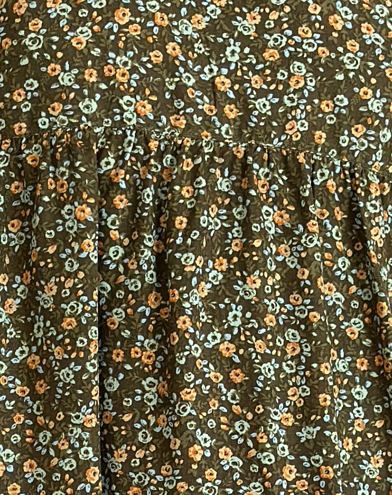 Marate Puff Sleeve Mini Dress in Grunge Floral Khaki