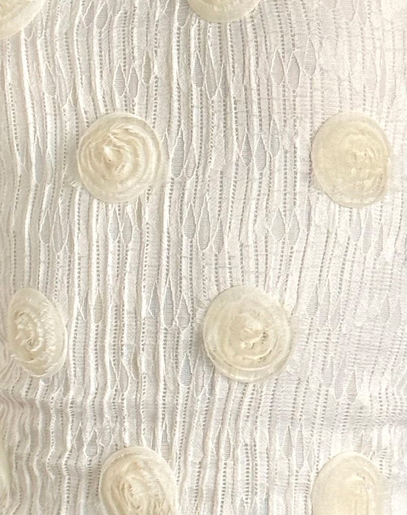 Our Moira top featuring a one shoulder design, scalloped edge detail in ivory textured rose fabric. Style with the low rise Skater shorts.