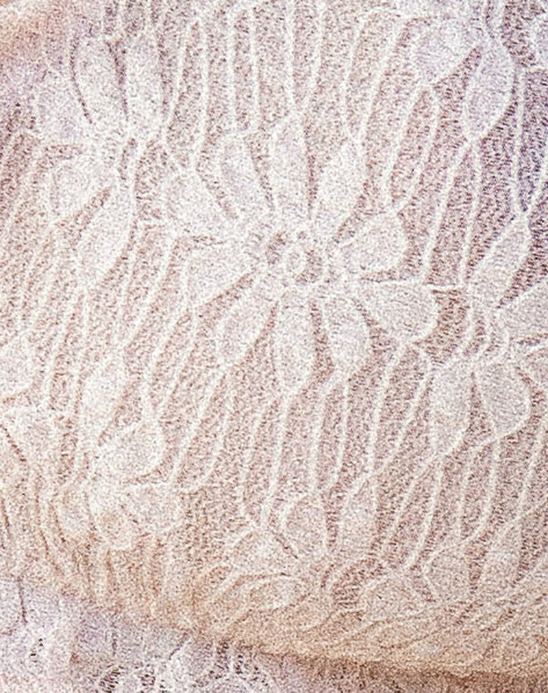In a baby pink lace, the Naila bra features in a bralette style with adjustable straps and a clasp back. Complete with a delicate picot trim and a red bow accent at the centre. Pair with the matching Adrienne thong.