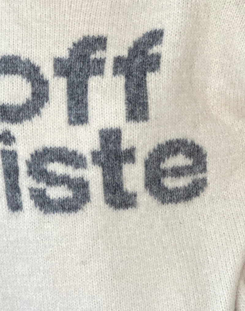 The Namari Jumper in an ivory knit material. Featuring loose fitted cuffed sleeves and a crew neckline, establishing an oversized fit. Complete with an "off piste" print. Pair with our classic Parallel jeans in steel blue.