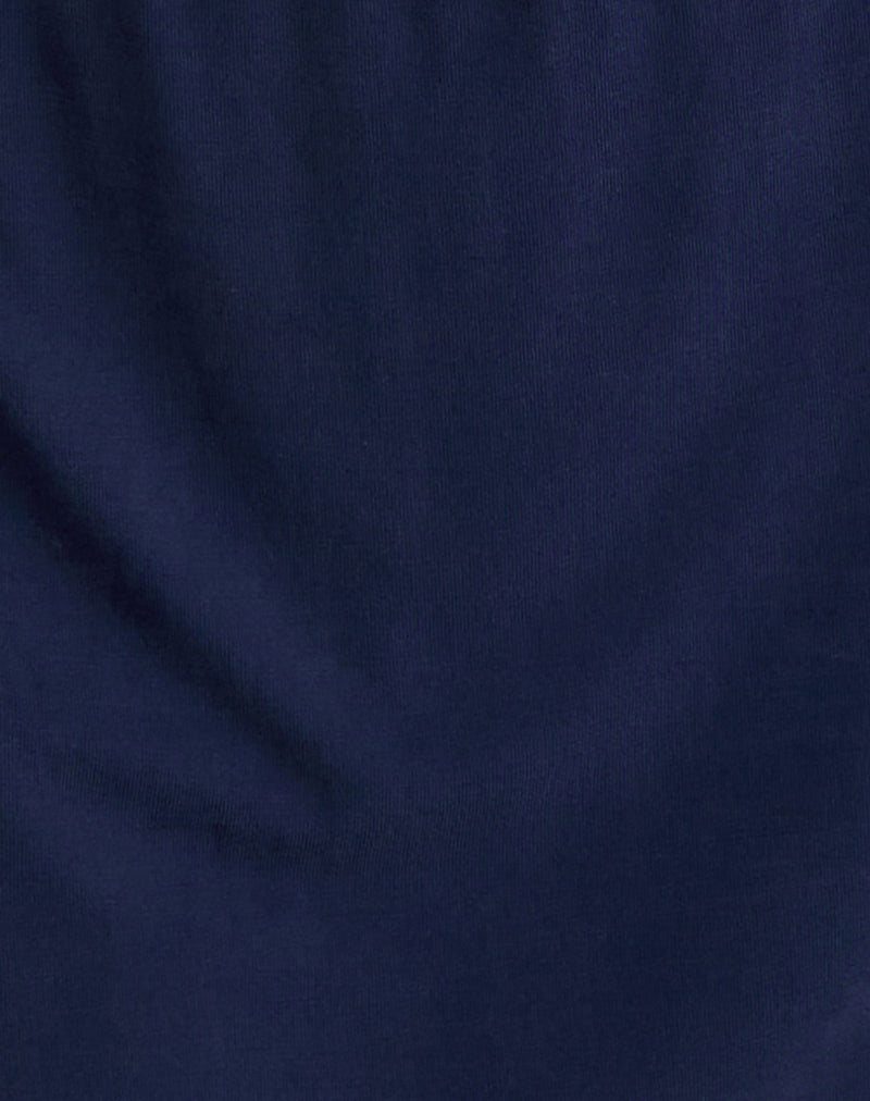 The Namya skort in cupro navy, featuring a mini-length and a-line design, in a jersey fabric. Paired with our Emberly top.