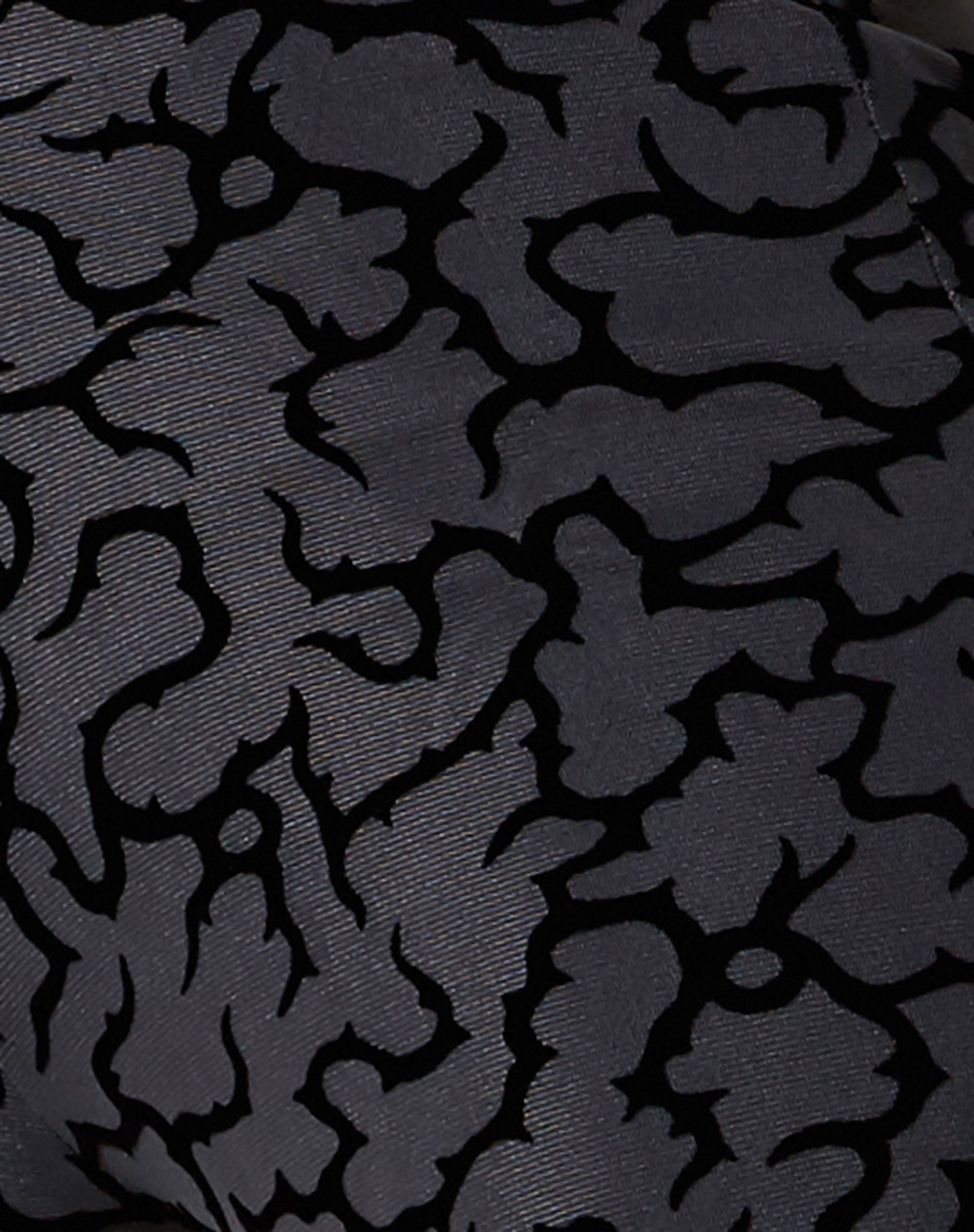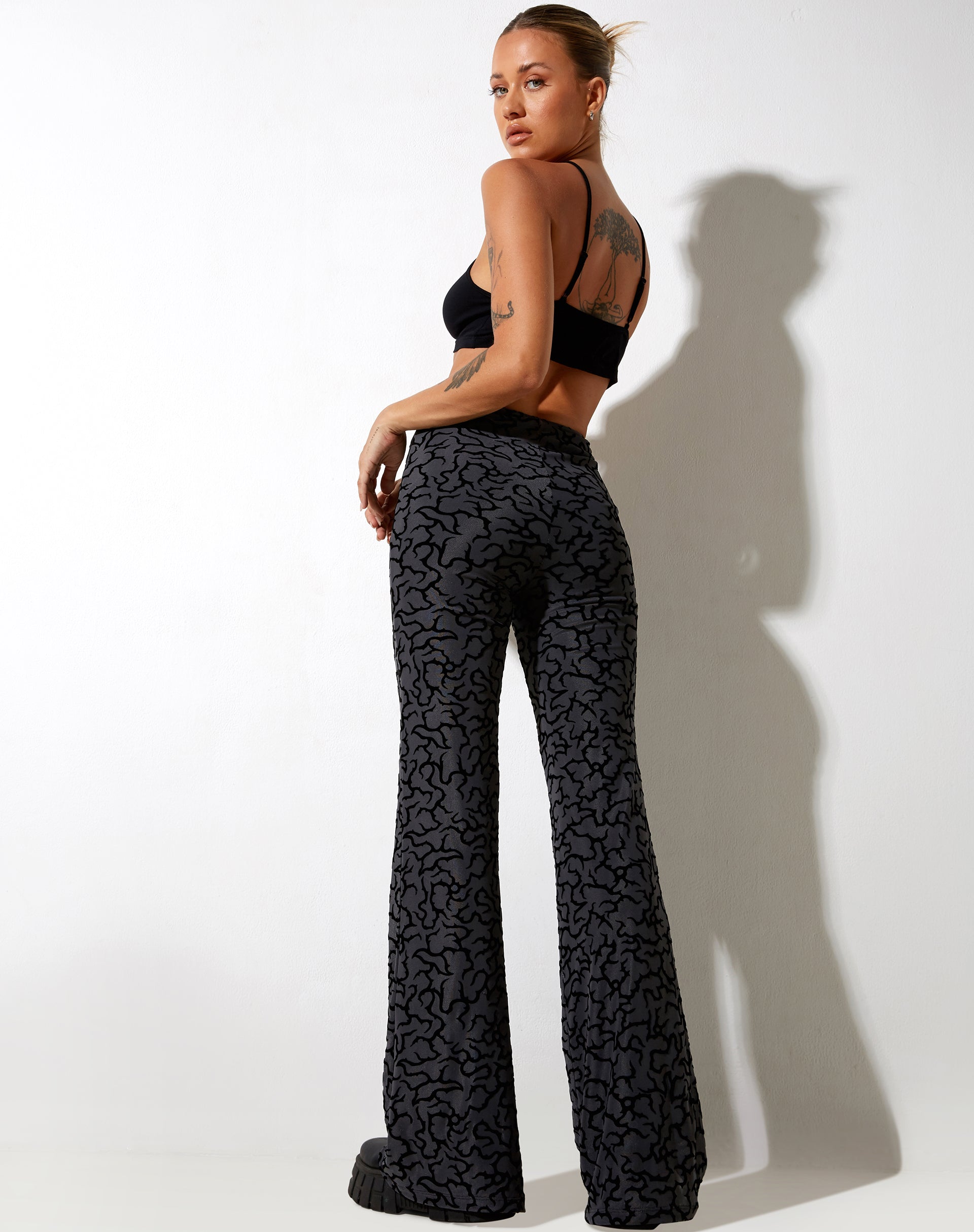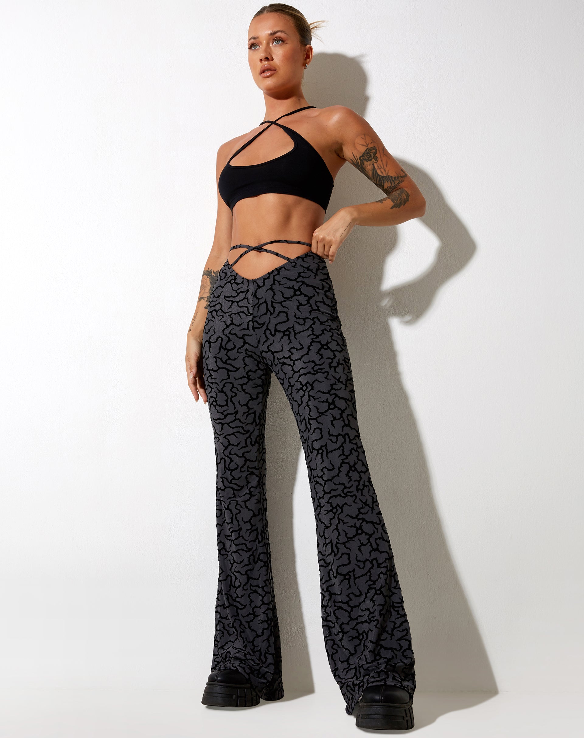 A statement trouser will instantly dress up your look. In a grey and black tibal flock, the Nancha trouser feature a high waist with cutout detailing and flare leg. Double up the print with the matching Ribus top.