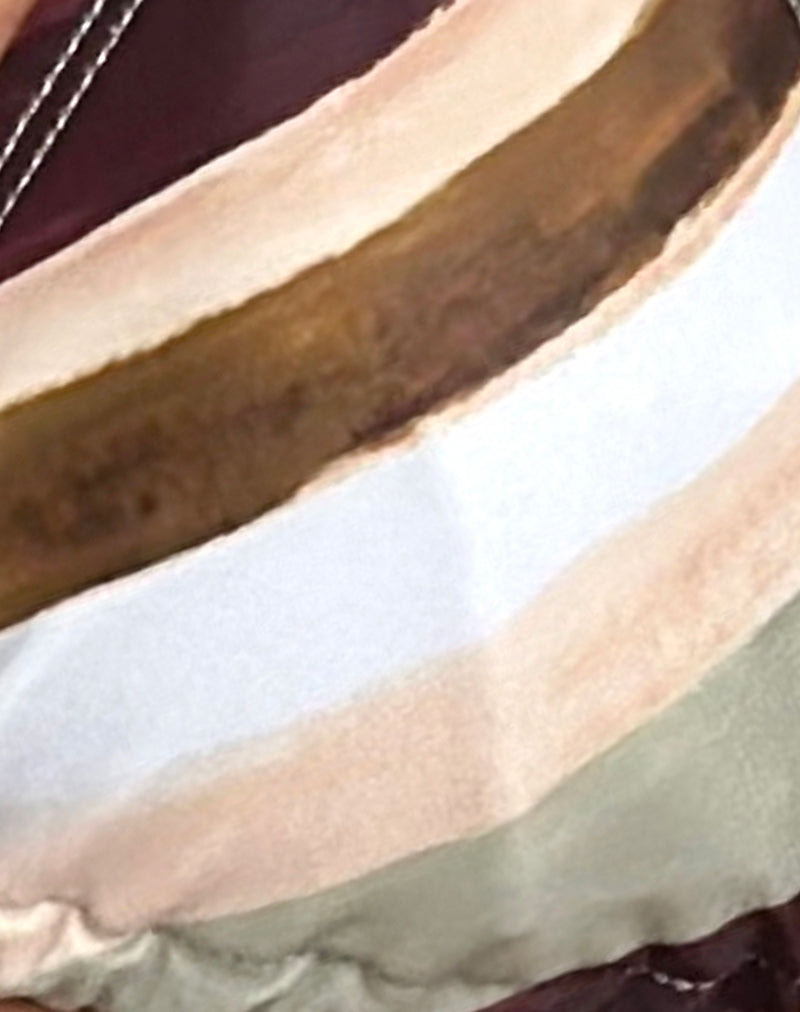 Halterneck triangle bikini top with adjustable ties at neck and at back in a printed red and white stripe. Pair with our Leyna bottoms.