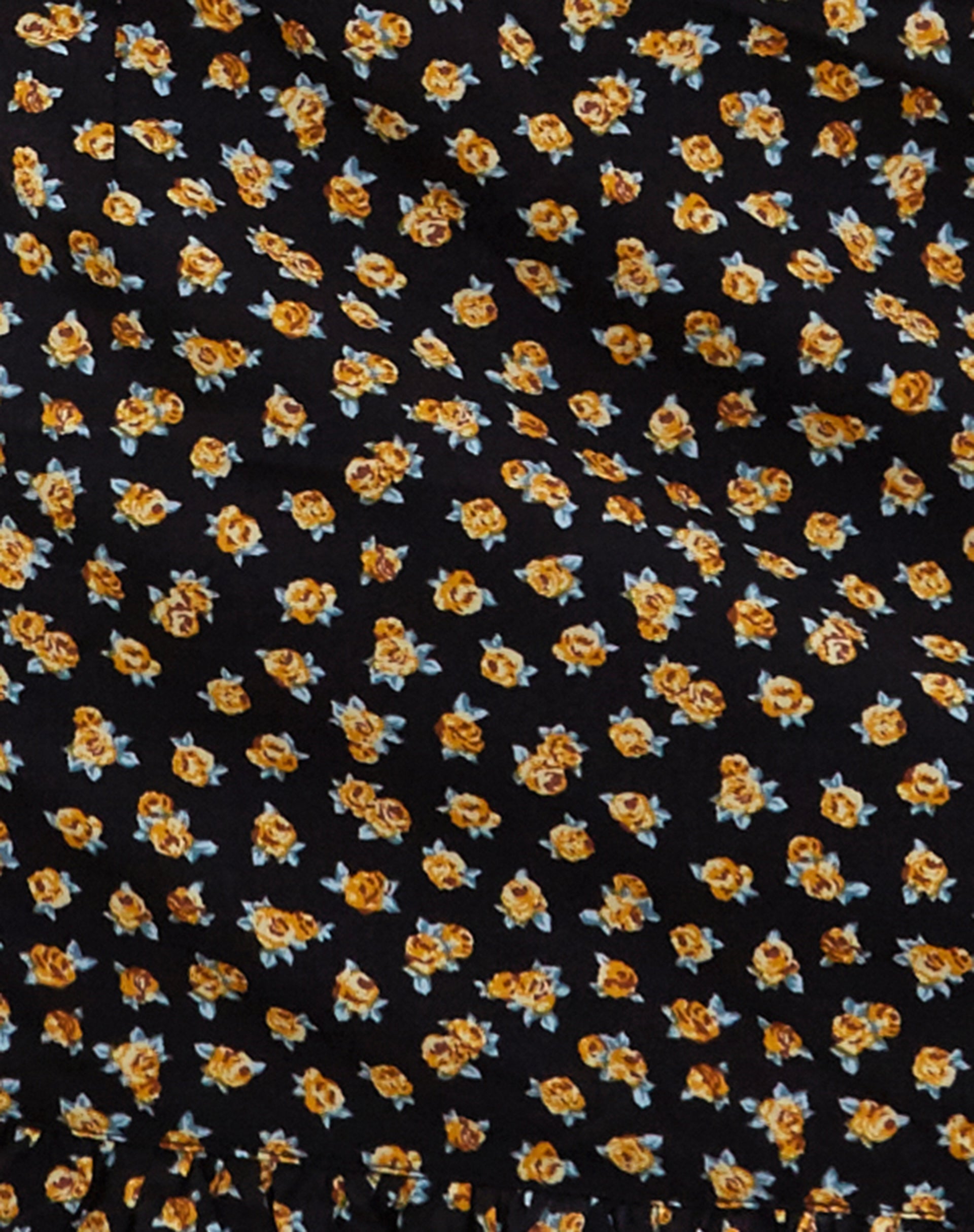 Add some print to your wardrobe with the Ribay skirt. Featuring a loose, low-rise fit that falls mini length and a ruffle trim along the hemline in a black woven fabric. Detailed with a bronze ditsy floral repeat print. Complete the 'fit with our Maika top.