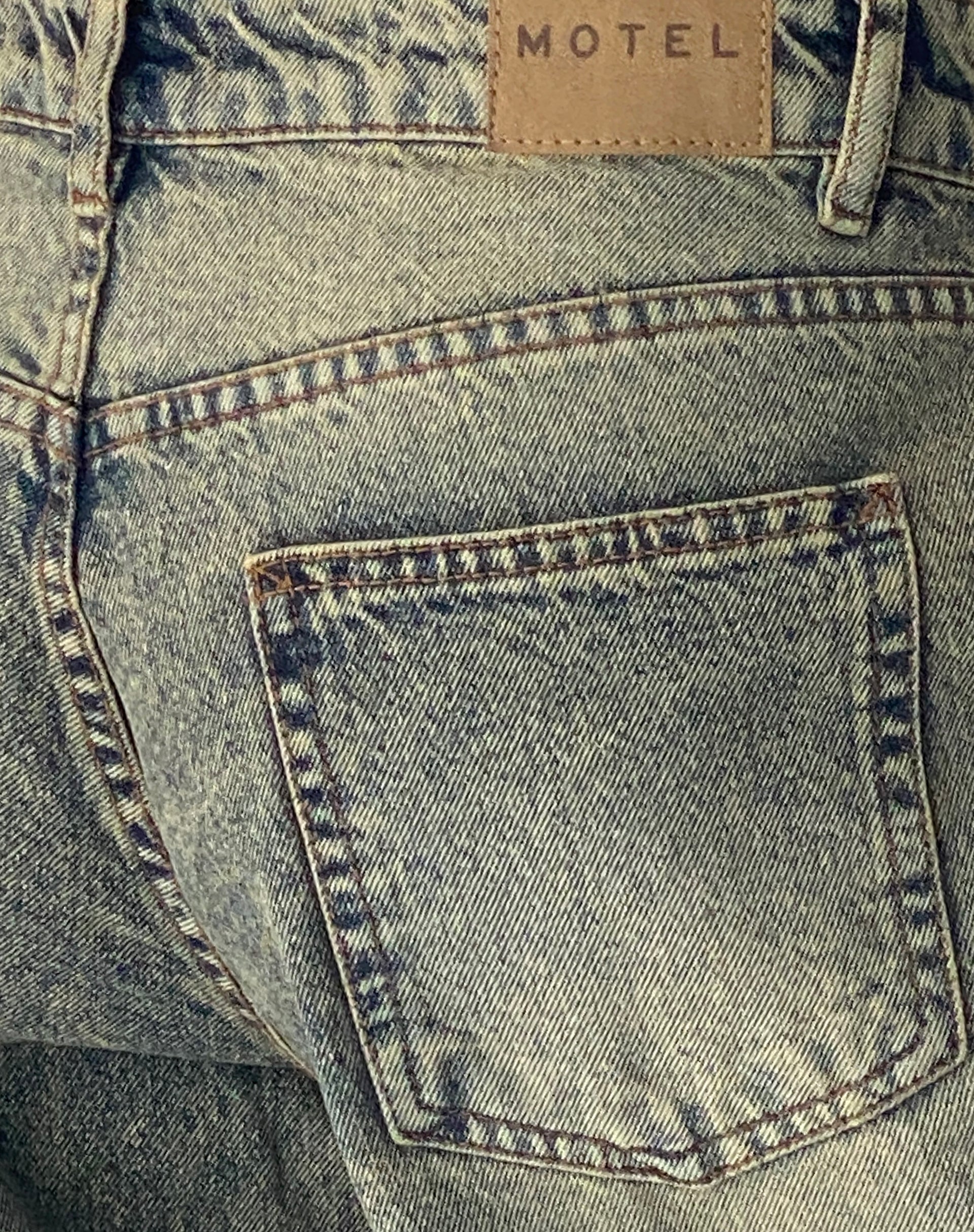 Same style, new colour. The newest addition to the Roomy jean ~ boasting an oversized, low rise fit and floor-length wide legs with a clean hem in a sand wash blue rigid denim. They feature a zip and button fastening and 5 pockets, finished with a branded back tab, button and rivets. Paired with the Jojes top.
