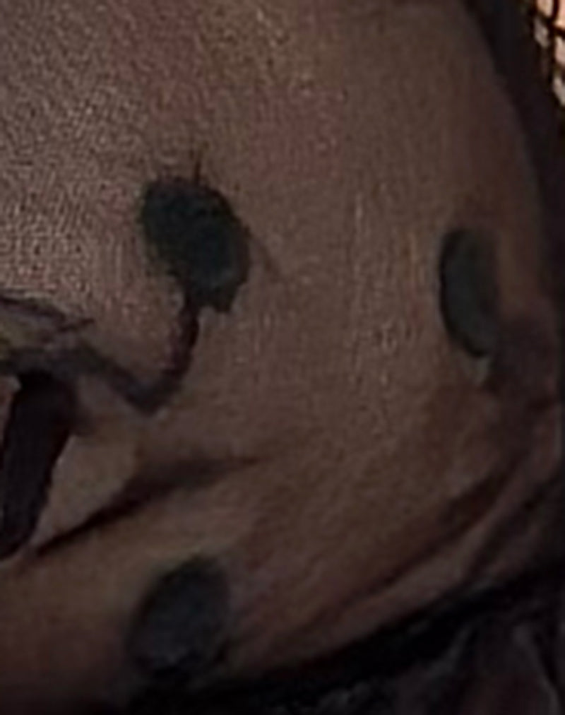 Add some mesh to your underwear collection with the Rua bra. Featuring triangle cups, frill underbust detailing and a centre bow. Finished in an all over black mesh material with added embroidered polkadots. Get the matching set with our Keyra thong.