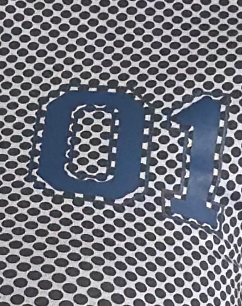 The Salda tee in grey micro spot features a regular fit with short sleeves and a crew neckline. Detailed with contrast stripes along the shoulders and neckline. Finished with a printed '98' numeric sports logo in navy. Paired with the Nidya skirt.