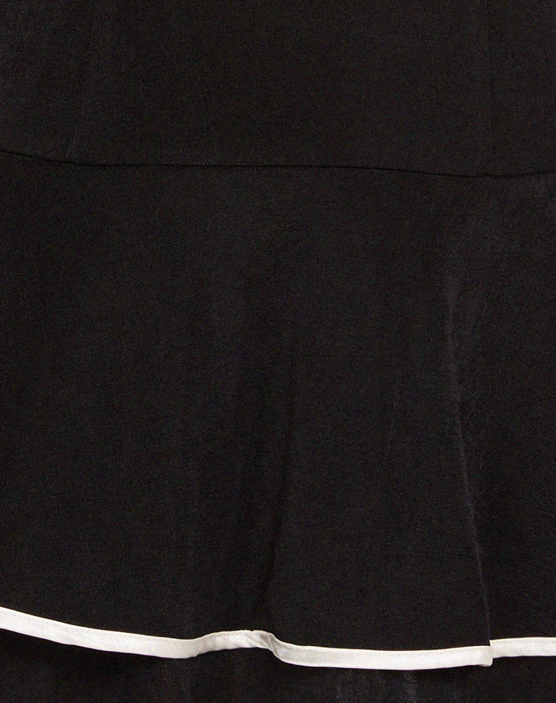 Our Samira bandeau dress is the perfect LBD. Featuring a mini length in a black slinky crepe material with skirt and ivory piping around hem and bust.
