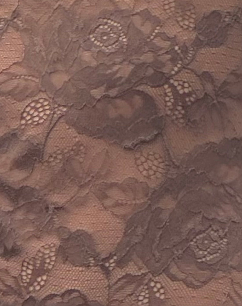 In a dark brown sheer lace, the Sevila dress features a mini, bodycon silhouette with long, flared sleeves and a boat neckline. Complete with scalloped hem detailing on an unlined body.
