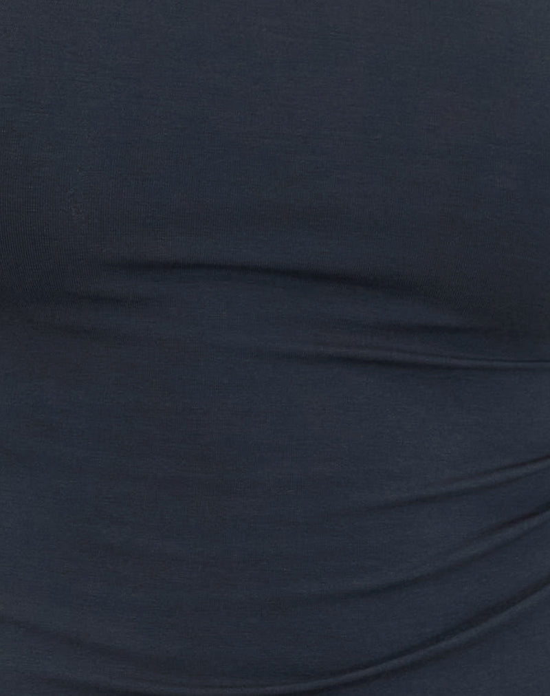The Shalas top in a grey ocean storm rayon jersey material. Featuring a halter neck design, bodycon fit and asymmetrical hem. Pair with the Hondra trouser.