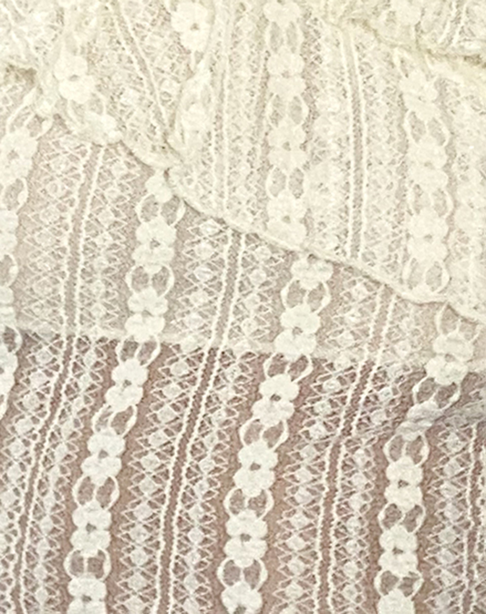 Turn heads this summer with our Simran Top. This stunning top features an off-shoulder bardot-style fit with a large ruffle across the neckline, with a frill on the right chest for added detail in a cream lace. Pair with our Betharia skirt.