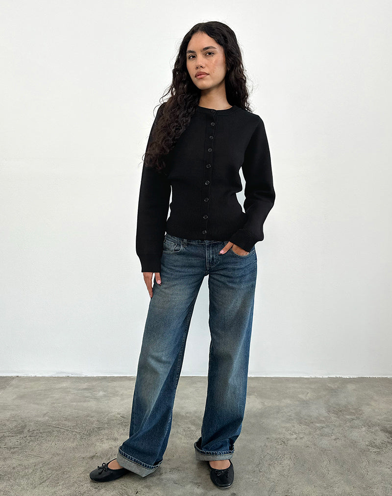 The Subra cardigan features long sleeves and a crew neckline, in a regular length bodycon fit with button front detail. Finished in a black flat knit. We've paired with our Parallel jeans.