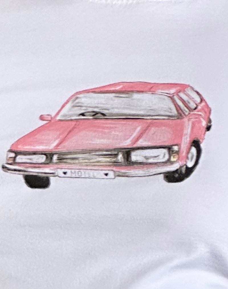 In a white jersey fabric, the Sutin tee features short sleeves, a crew neckline and a slim fit with a scribble car printed graphic on front. Complete the look with a pair of Parallel jeans.
