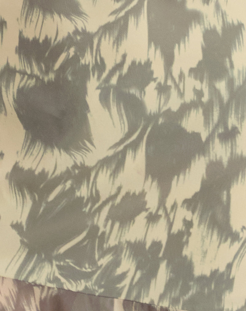 The Tanta midi dress in a blurred floral yellow chiffon fabric. Featuring a halter neckline with an adjustable tie, an asymmetrical hem, a side slit, and a concealed side zip.