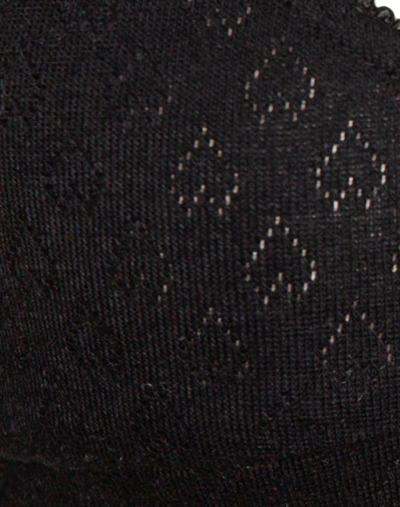 In a soft black pointelle fabric, the Yanas bra features a bralette style with adjustable straps and a clasp back. Complete with a delicate picot trim and a red rose accent at the centre. Complete the set with our matching Yinis knickers.