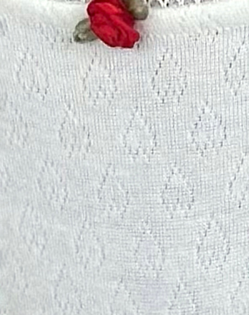 In a soft ivory pointelle fabric, the Yanas bra features a bralette style with adjustable straps and a clasp back. Complete with a delicate picot trim and a red rose accent at the centre. Complete the look with our matching Yinis knickers.
