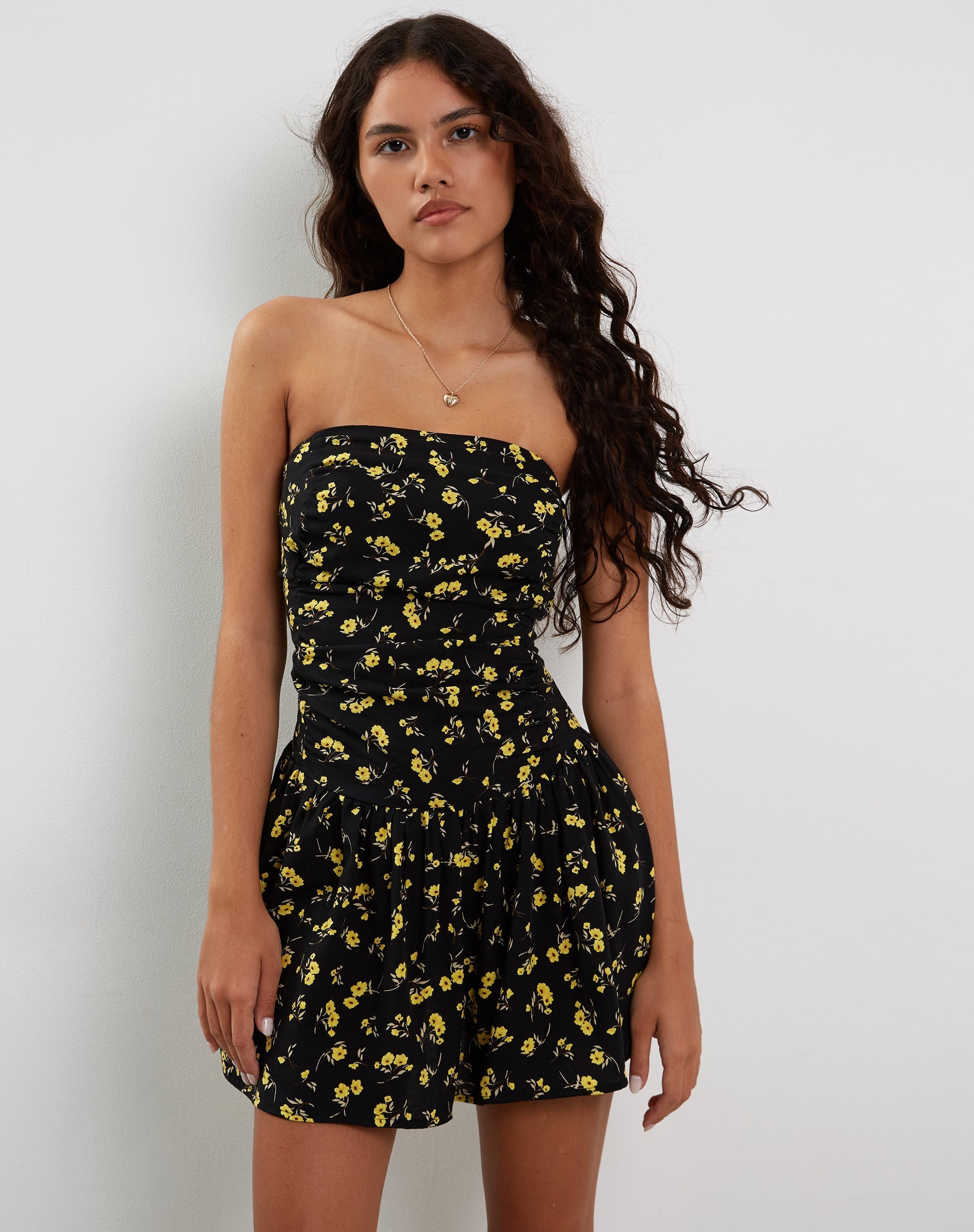Zhao Bandeau Mini Dress in Buttercup Black and Yellow